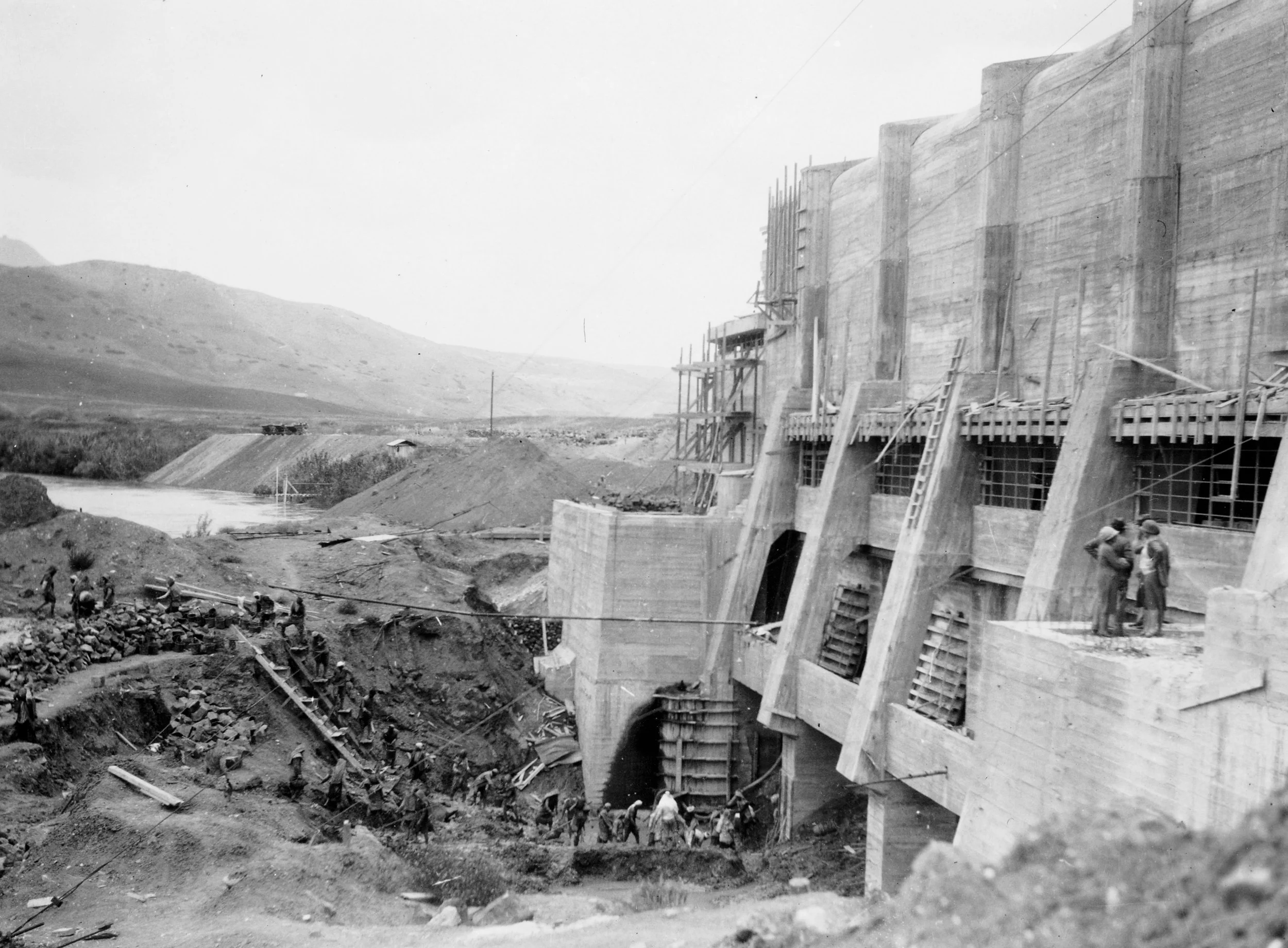The Rutenberg Hydroelectric Plant under construction, 1929.