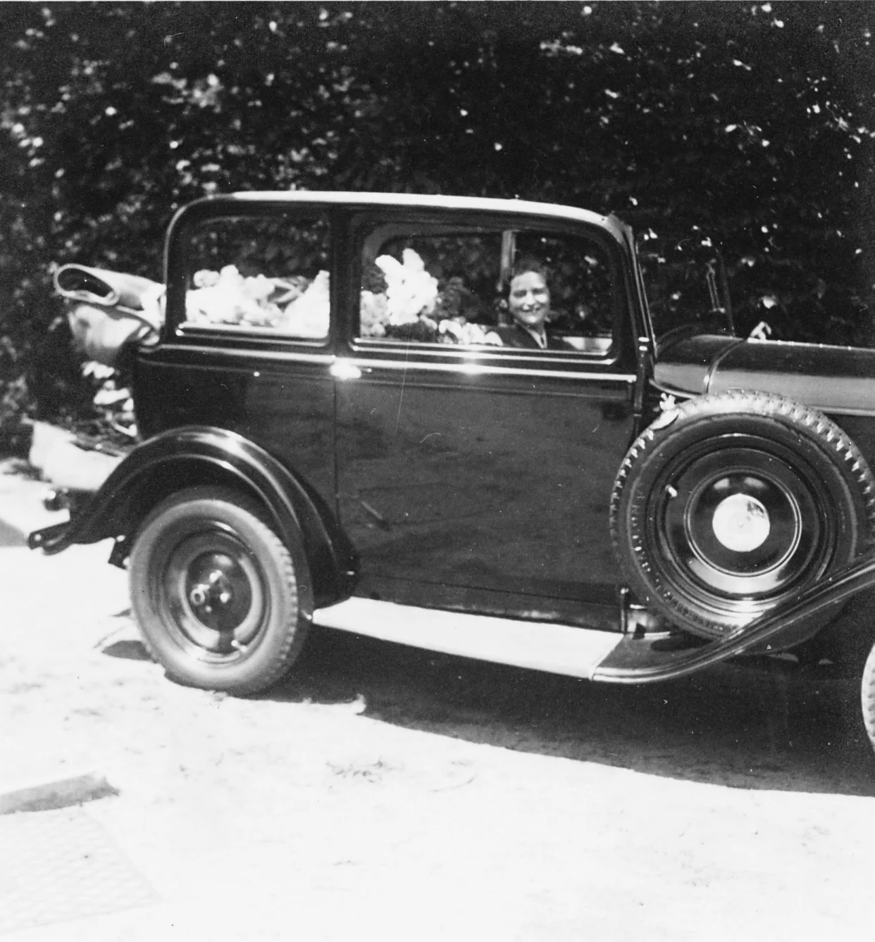 Gisela in her beloved Opel.